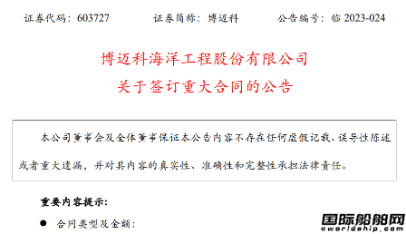 6月15日,博迈科发布公告,博迈科海洋工程股份有限公司(以下简称“公司”)与 MODEC Inc.(以下简称 MODEC)子公司 Offshore Frontier Solutions Pte. Ltd.(以下简称 OFS)签署了海上浮式生产储油船(FPSO)上部模块的建造合同,这艘FPSO建造完成后将部署在圭亚那近海 Stabroek区块,供埃克森美孚在圭亚那使用。主要工作范围涵盖FPSO上部模块的详细设计、加工设计、材料采购和建造等,合同金额为151,931,702.40美元,由固定价格部分加当前预估的可变工作量核算金额部分组成。最终的合同金额以合同结束时双方确认的实际完成的工作量核算后得出的金额为准。该合同生效日期为 2023年 6月 15日,计划于 2025年 8月完工。