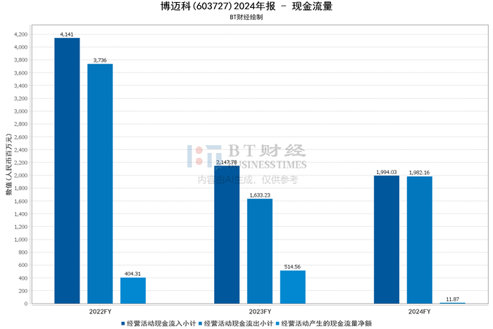 现金流量方面,尽管博迈科在2024年实现了收入和利润的双增长,但经营活动产生的现金流量净额大幅下降97.69%,仅为1186.88万元。这主要是由于项目收支净额减少,反映出公司在现金流管理上面临挑战。此外,投资活动现金流净额显著减少,表明公司在持续加大投资力度以支持未来增长。