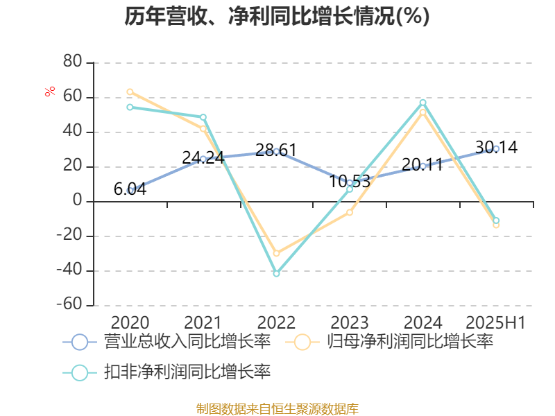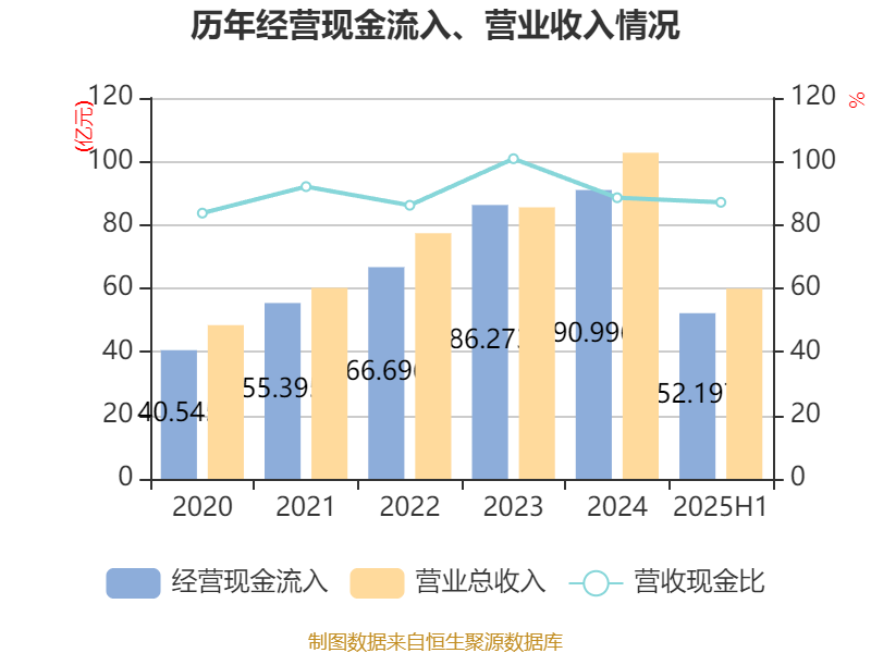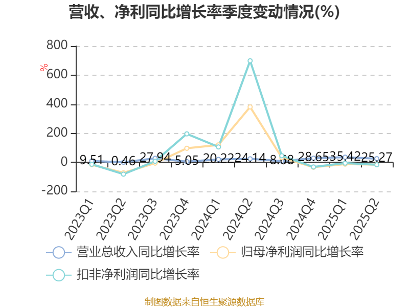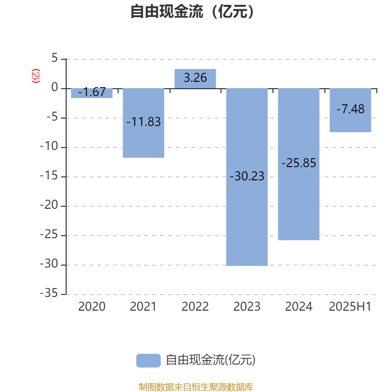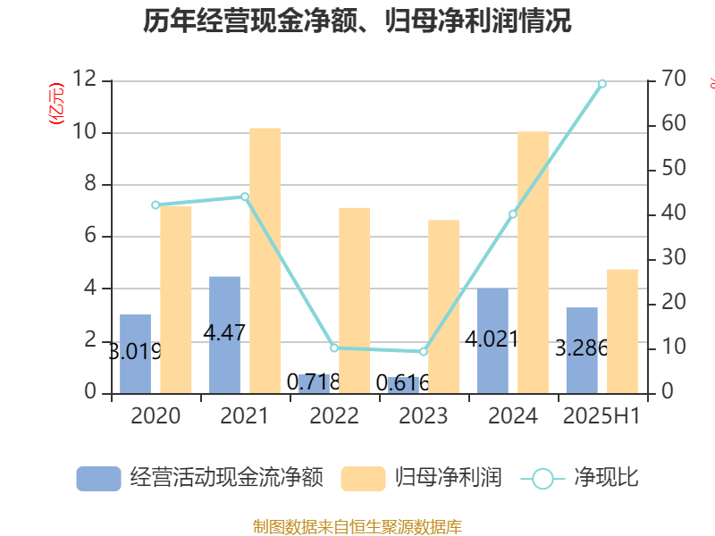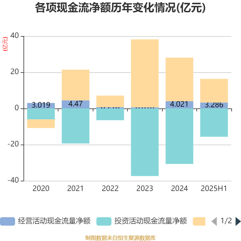2025年上半年,公司经营活动现金流净额为3.29亿元,同比增长326.24%;筹资活动现金流净额13.09亿元,同比减少1.97亿元;投资活动现金流净额-15.66亿元,上年同期为-15.52亿元。