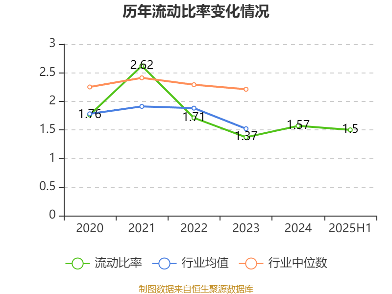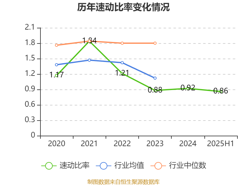 2025年上半年,公司流动比率为1.5,速动比率为0.86。