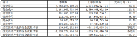 从公司相关会计科目也可以看出,原材料价格大幅上涨、成本上升和人员同比增长较多也导致了公司营业成本明显大增120.31%、公司管理费用同比增长38.39%。不过公司表示营业成本变动原因不光是是营业收入增加及原材料涨价导致对应的成本增加,本期运输费在营业成本中列示增加也是公司营业成本大增的重要原因。