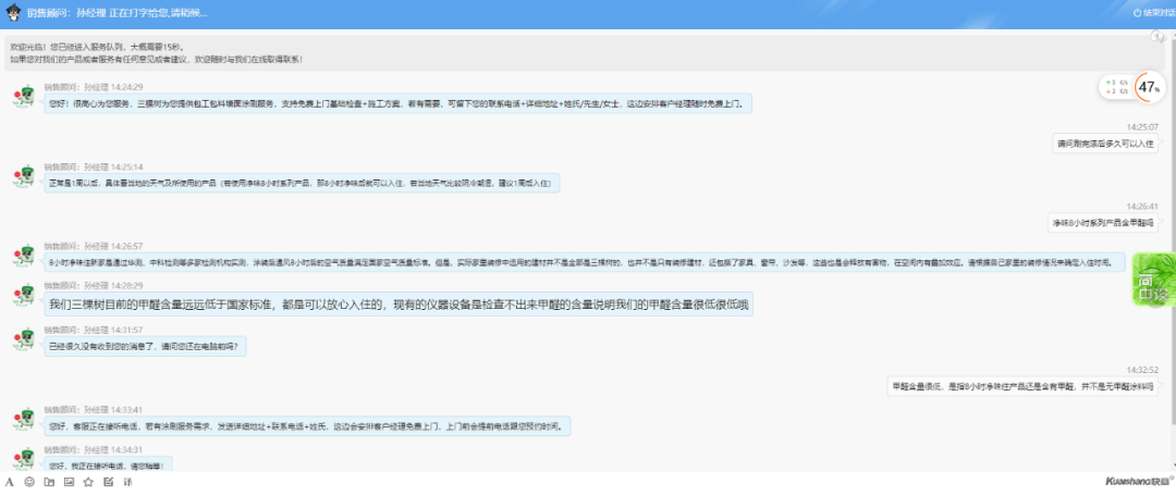 在知乎关于“三棵树真的能马上住吗?”的讨论中,网友“尘中之尘”表示,“本以为三棵树‘马上住’真能无甲醛快速入住。没想到,刷墙一周后检测甲醛超标,施工前说好的八小时净味呢?”