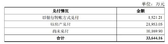 已兑付金额中恒大以银行转账付款1521万元,2.19亿元用房产抵债。