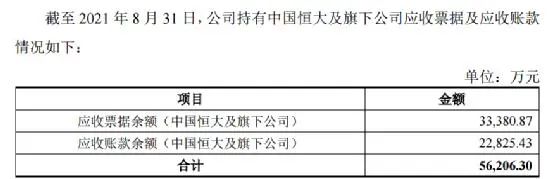 除上述逾期部分欠款外,三棵树对恒大及旗下公司仍有5.62亿元的应收款项,其中应收票据3.33亿元,应收账款2.28亿元。