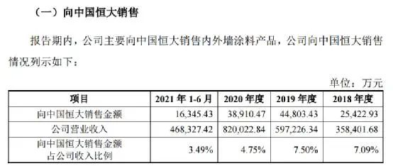 从对《核查函》的回复报告来看,三棵树与恒大互为客户,但主要是前者作为后者的上游对其销售涂料产品。