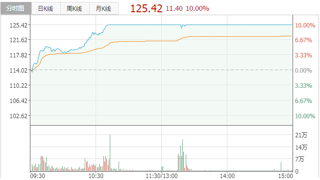 “从周一跌停至股价100.31元,到现在周三涨停价125.42,这样的反弹力度确实非常强势,可见这只股活性很强。如果周一大胆买入到今日可收获不小的浮盈。”某财经媒体人说。