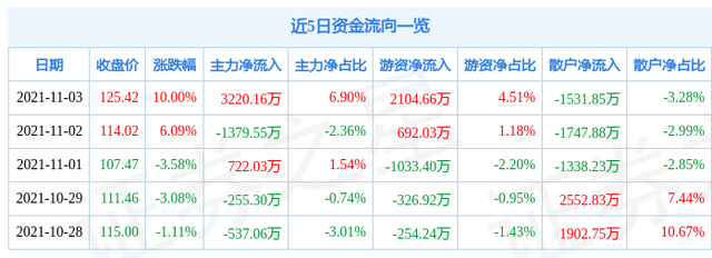 值得注意的是,前天(2021-11-01)三棵树出现大跌,早盘开盘大幅低开6个多点,随后跌停,经过午盘的慢慢反弹,直到当日下午收盘,三棵树跌幅收窄至-3.58%,股价报107.57元。