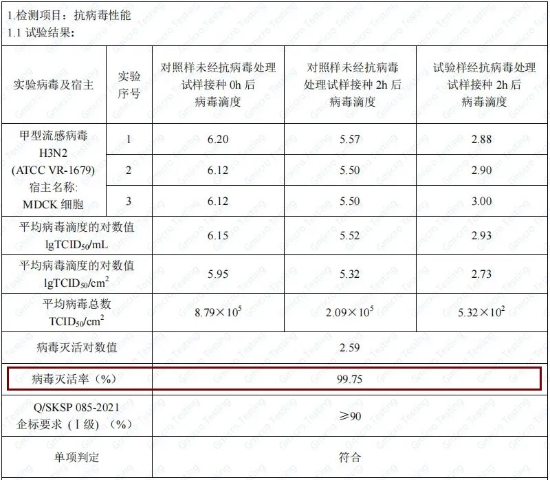 小森科创晶瓷板甲型流感病毒灭活率检测结果