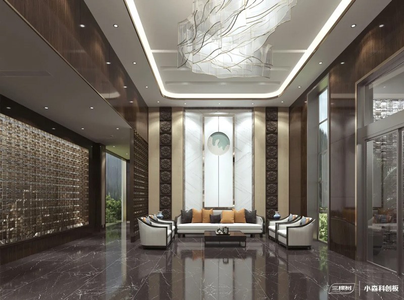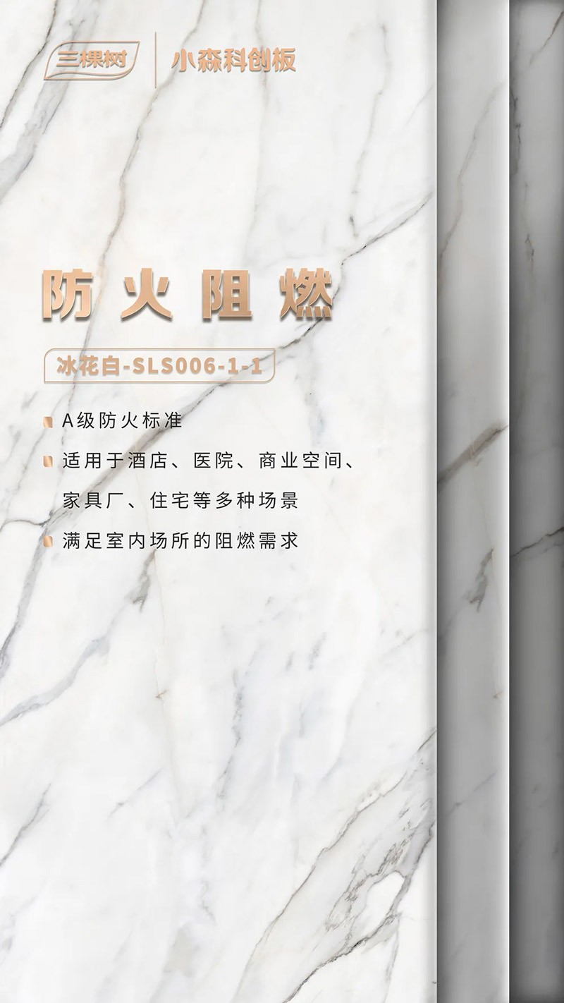 三棵树小森科创晶瓷板,生产过程中不添加任何有害物质,甲醛检测结果超越 ENF级新国标;表面UV保护层,污渍不渗透,抗污耐用,一抹即净;基材、花色、尺寸随心定制,满足个性化定制需求。