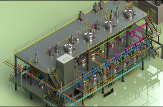 该生产线包括工艺设计、设备制作、钢结构搭建、现场安装、管道仪表系统、自动化控制系统等全部工作;该生产线建成后,将是目前国内规模最大、自动化程度最高的美缝剂生产线,整条产线由2条A组分生产线,12条B组分生产线组成。