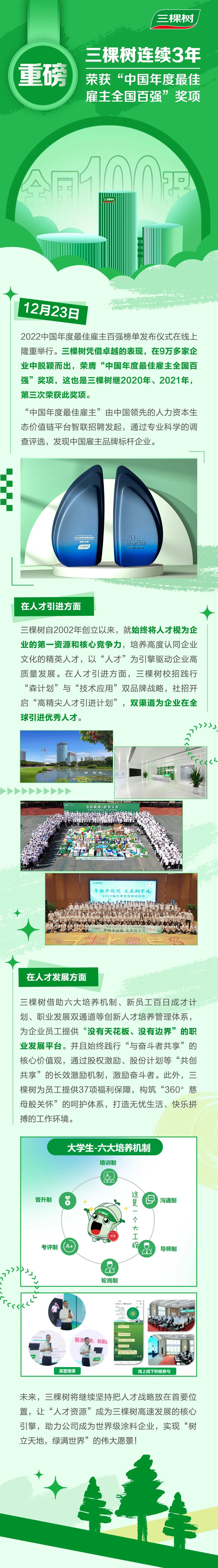 【资讯】三棵树连续3年摘得“中国年度最佳雇主全国百强”奖项