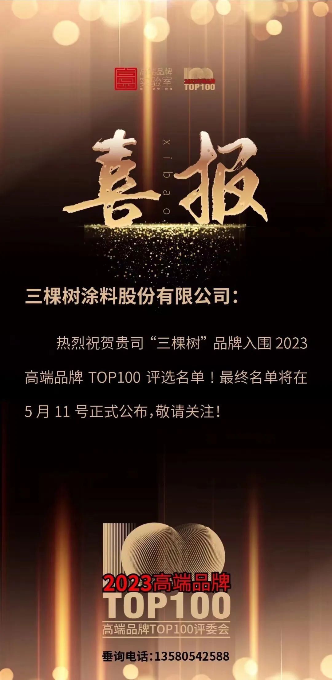 近日,涂料经从“高端品牌实验室”了解到,三棵树入围“2023高端品牌TOP100”候选名单,这也是涂料行业屈指可数的入围品牌,标志着三棵树的品牌影响力正由行业品牌向消费者品牌升级。