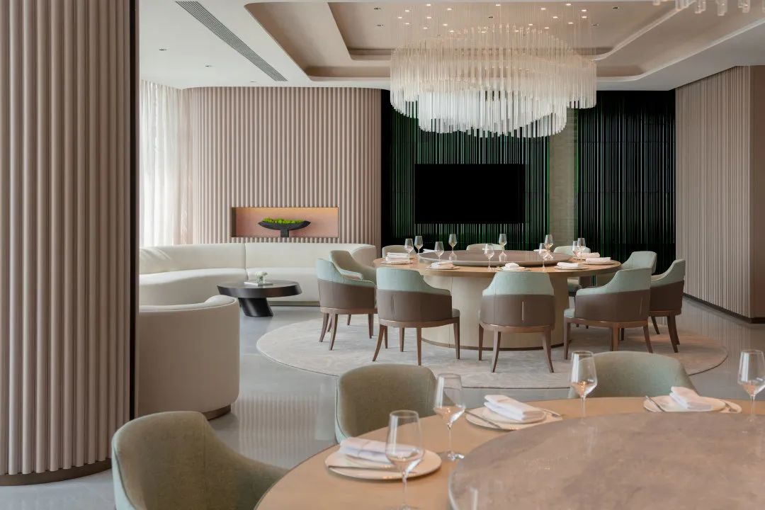 餐饮区采用三棵树艺术漆、小森板,以极致、丰富的质感纹理和轻奢调性,探索生活与艺术融合的无限可能性。