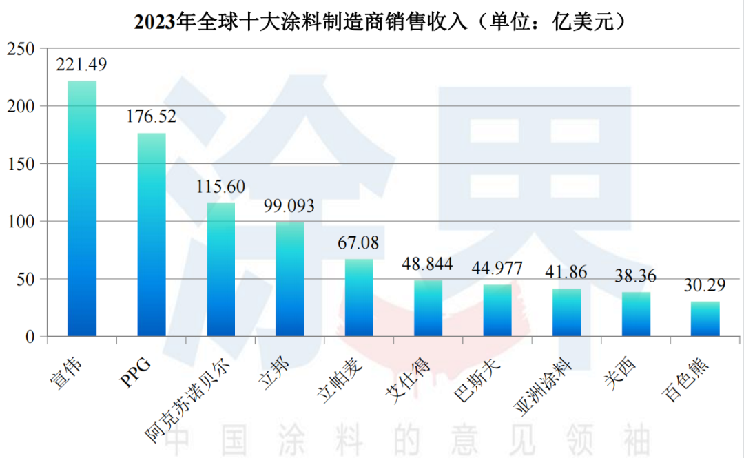 根据中国涂料工业权威媒体《涂界》日前公布了“2023年全球十大涂料制造商排行榜”(点击查看详细榜单),该排行榜是一份全球权威大型涂料企业排名榜,榜单以生产型企业的涂料业务销售收入为基准进行排名,每年发布一次,这是《涂界》第九次发布该排行榜。