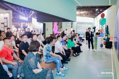 备受期待的三棵树小森安芯板东方莫兰迪花色在展会上正式发布,与「设计上海」共赴十年之约,呈现联合前域设计,提供美好生活方式。现场,东方莫兰迪花色大板线下首次“公开露面”,吸引了大批观众前来位于主会场中心位置的三棵树展位一探究竟,成为当天炙手可热的“顶流展位”“顶流产品”。
