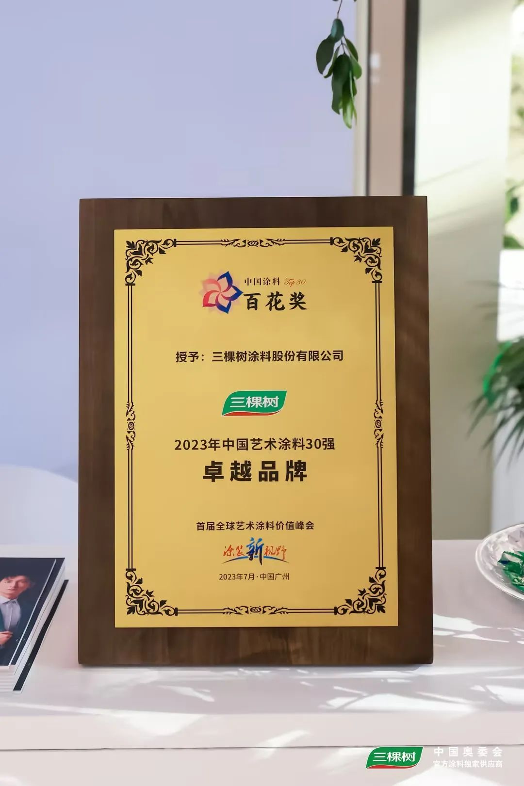 近日,涂料权威媒体《涂装新视野》发布了百花奖“2023年中国艺术涂料30强”榜单,三棵树凭借2022年的优异成绩以及良好的市场口碑与服务能力,从众多参评企业中脱颖而出荣获年度“卓越品牌”,用实力诠释品质与发展。