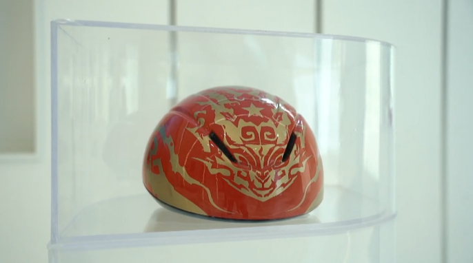 (三棵树为国家短道速滑队设计并涂刷的头盔图案)