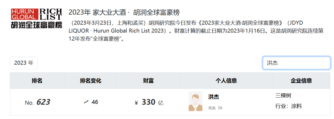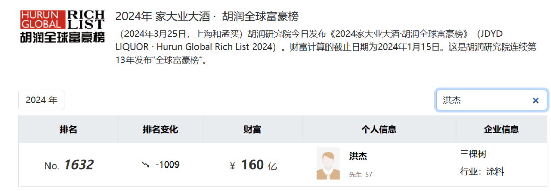与此同时洪杰的财富已经大缩水。《胡润全球富豪榜》显示,在2023年时,洪杰的财富为330亿元,到了2024年,洪杰财富为160亿元。