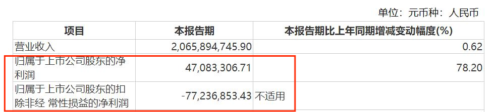 但实际上,仅计入当期损益的政府补助就高达1.47亿元,若剔除非经常性损益,利润直接转亏——扣非归母净利润亏损7723.69万元。