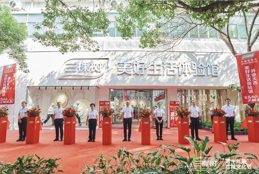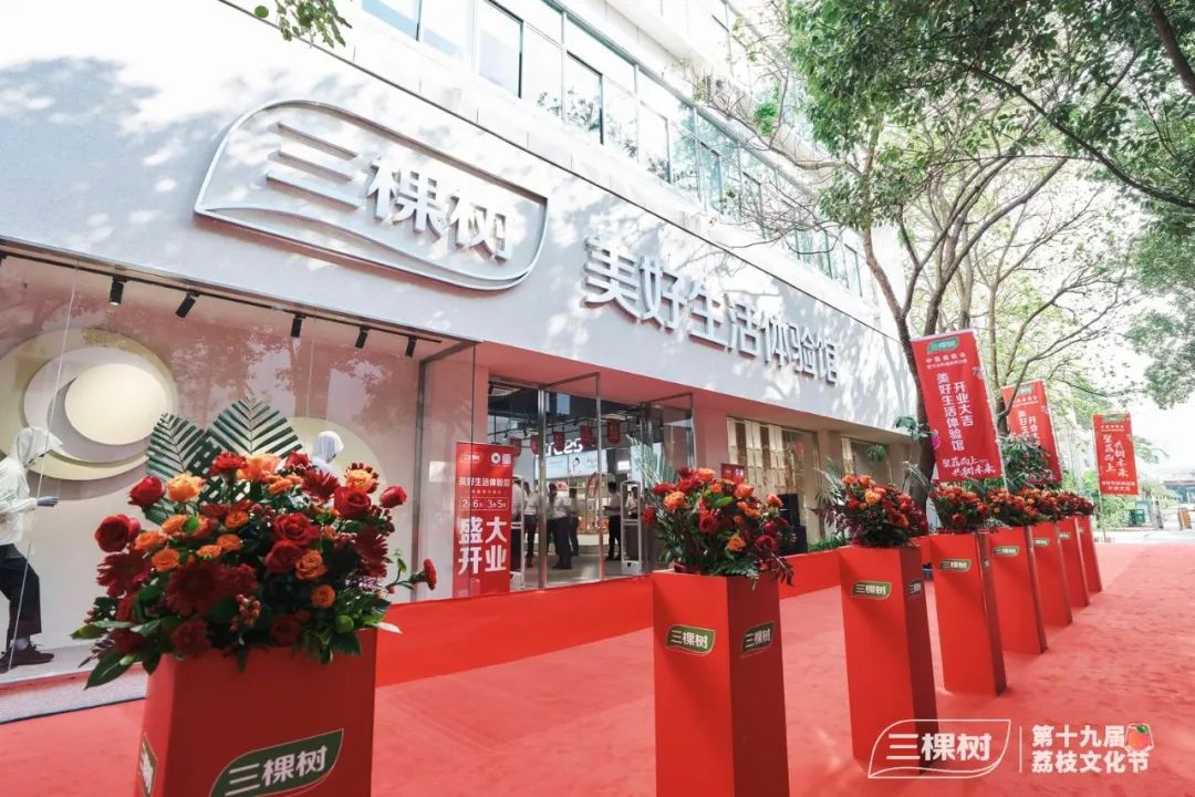 共树未来,共享美好。7月16日,三棵树美好生活体验馆在第十九届荔枝文化节期间隆重开业。作为三棵树美好生活周边的首家线下实体店和品牌文化展示空间,美好生活体验馆以满足人民日益增长的美好生活需要为出发点和落脚点,通过提供绿色高品质产品和感动服务,传递健康、自然、美好的品牌理念,把人们对美好生活的向往照进现实。三棵树董事长兼总裁洪杰及夫人,副总裁徐荔芳、方国钦、朱奇峰、崔景焘共同出席开业剪彩仪式。