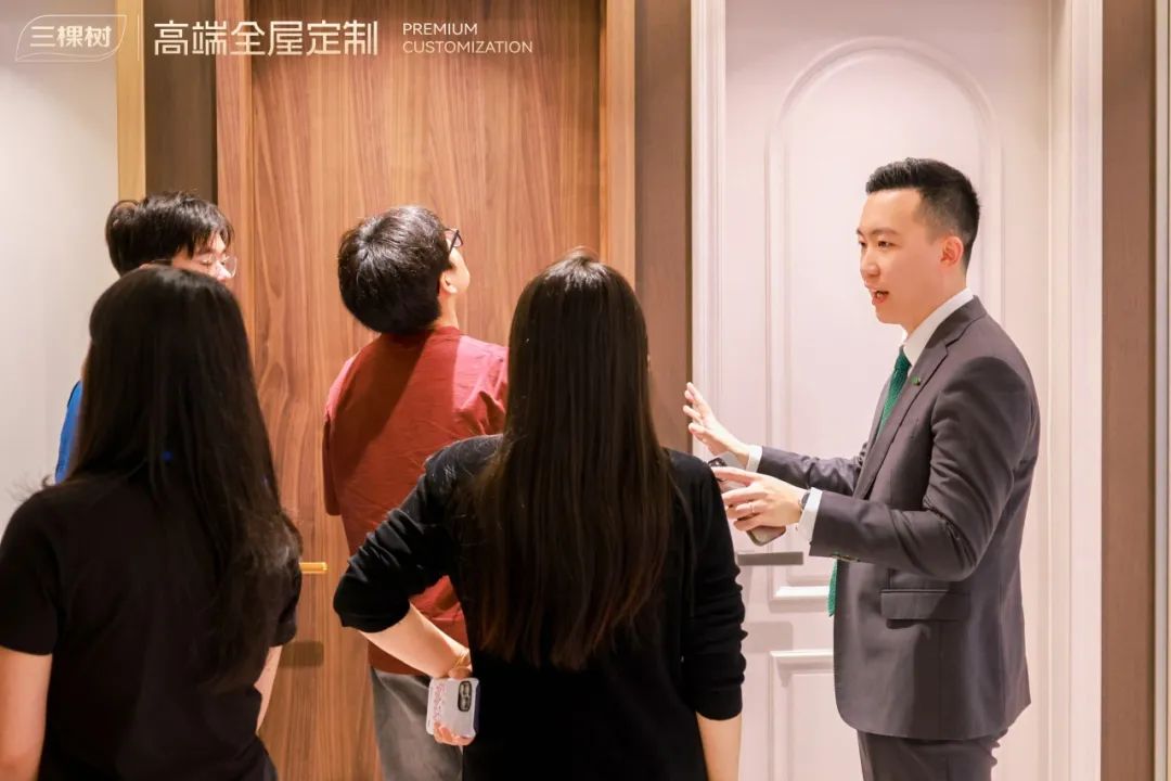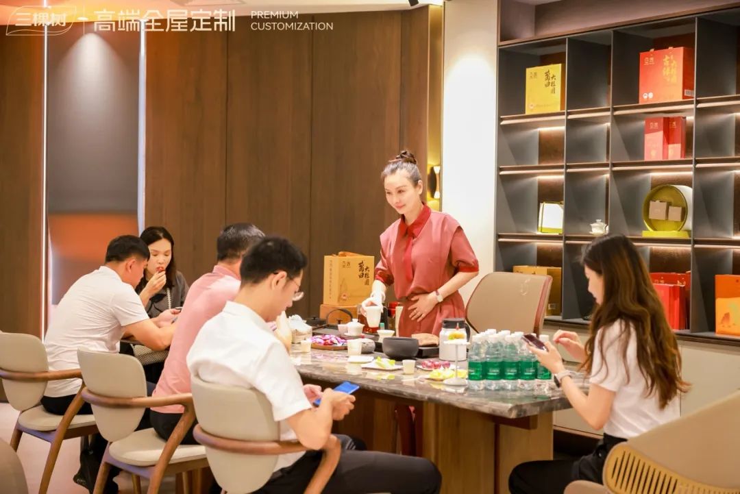 开业庆典仪式后,来宾们进入展厅参观,并进行了自由沙龙交流。走进三棵树高端全屋定制直营门店,首先映入眼帘的是宽敞明亮的大平层客厅,顶尖家居设计与精湛工艺交相辉映,个性化贴心定制服务更令到场嘉宾赞叹不已。从古典与现代的完美融合,到东西方元素的惊艳邂逅,消费者可以在这里亲身感受三棵树全屋定制产品的魅力,选择适合自己的家居风格。