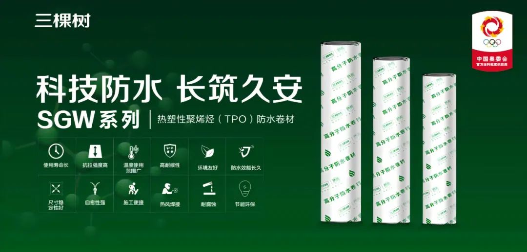 作为市政府重点打造项目,杭州大会展中心肩负时代使命,筑梦展望未来。项目屋面采用三棵树TPO防水卷材,凭借优异的耐候性、耐高低温、高反射比、高抗风揭等性能优势,为屋面构筑了可靠的防水屏障,延长建筑使用寿命。