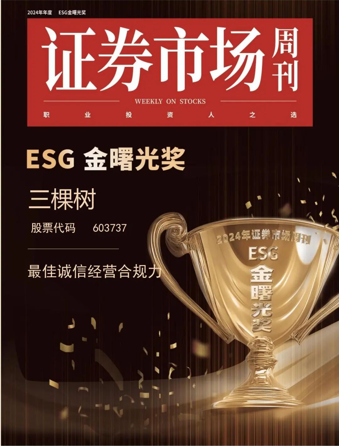 近日,备受瞩目的2024《证券市场周刊》“ESG金曙光奖”评选结果揭晓,三棵树荣获最佳诚信经营合规力奖,是对三棵树长期以来坚持诚信为本、合规经营的高度认可。