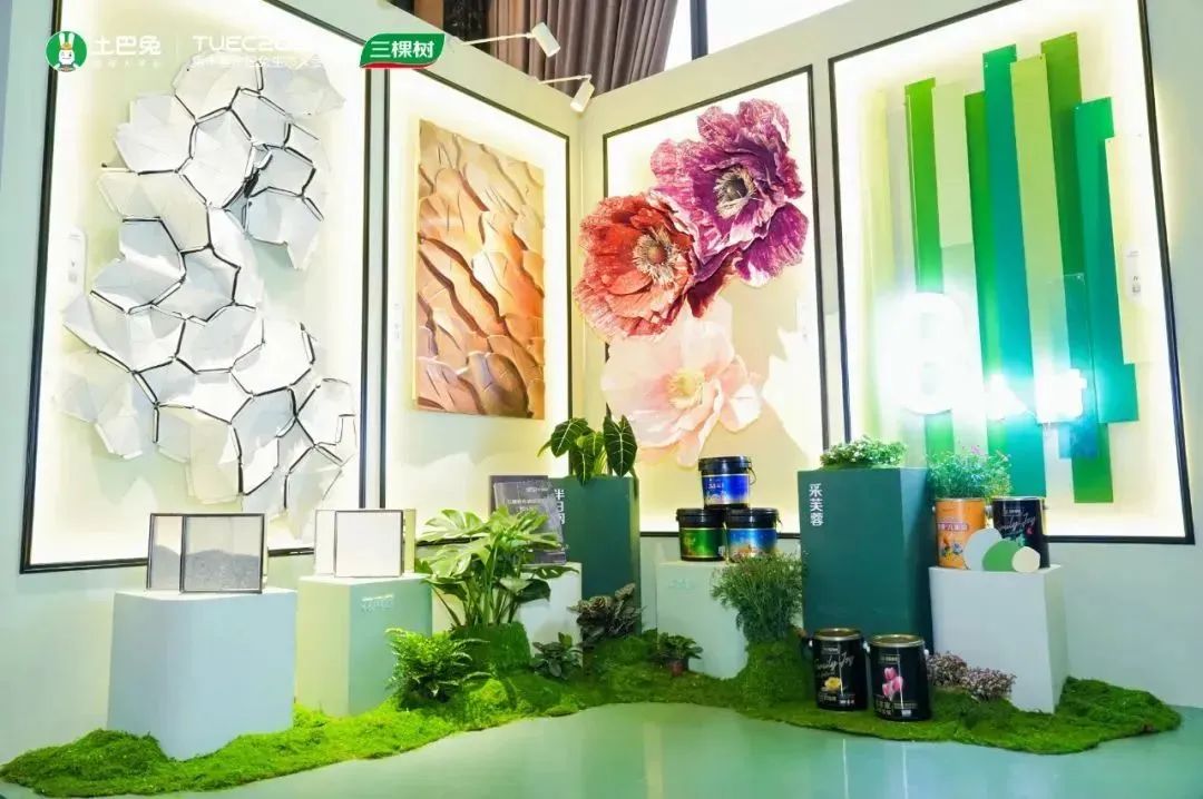 与此同时,以“国漆国色”打造梦幻色彩,三棵树《墙面艺术廊》于大会品牌展示区特别展出,传承东方之美,运用内墙涂料、艺术漆、小森板、外墙涂料构筑“春”“夏”“秋”“冬”四季艺术空间,让现场观众沉浸式感受产品艺术氛围和色彩美学,与艺术对话,引领美好生活需求再次革命。