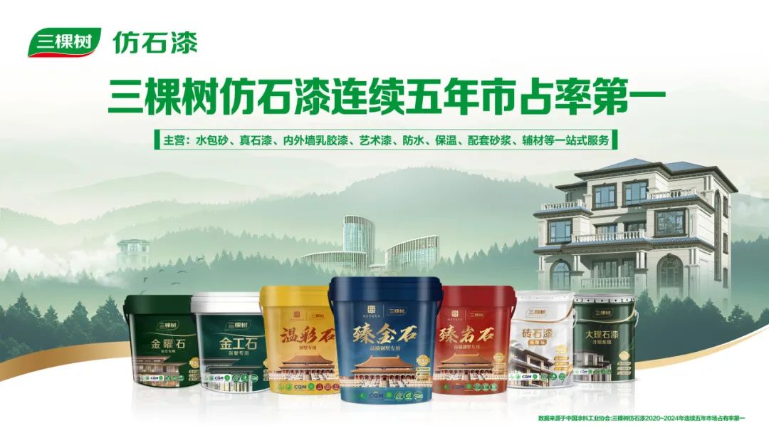 站在2025年新起点上,三棵树在仿石漆市场交出了一份优秀的成绩单,这是三棵树连续5年击败诸多国际品牌,位居中国市场首位,也是民族品牌依靠强大技术和创新能力取得重大突破的最好证明。向上生长,向下扎根,底气所在,信心所在,三棵树将继续与合作伙伴共创共赢,积极助力乡村振兴,为实现美丽中国的建设目标贡献力量。