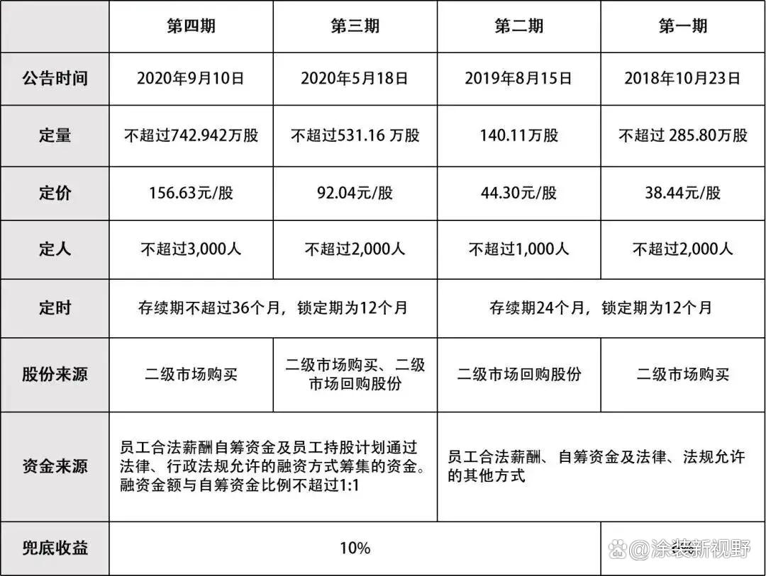 2018年10月首期员工持股计划启动,2019年至2020年又相继推出第二、三、四期。