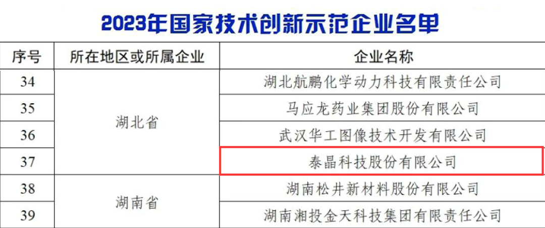 此次入选国家技术创新示范企业,是继泰晶科技入选国家重点专精特新“小巨人”企业、国家企业技术中心的又一国家级荣誉。国家技术创新示范企业是国家工业和信息化部从创新投入、人才激励、创新合作、创新队伍建设、创新条件建设、技术积累储备、技术创新产出、技术创新效益等方面,对企业进行的全方位考核评价。此次国家级殊荣的获评,既是对泰晶科技创新能力及成果的充分认可,也是对公司坚持关键核心技术自主攻关的激励。