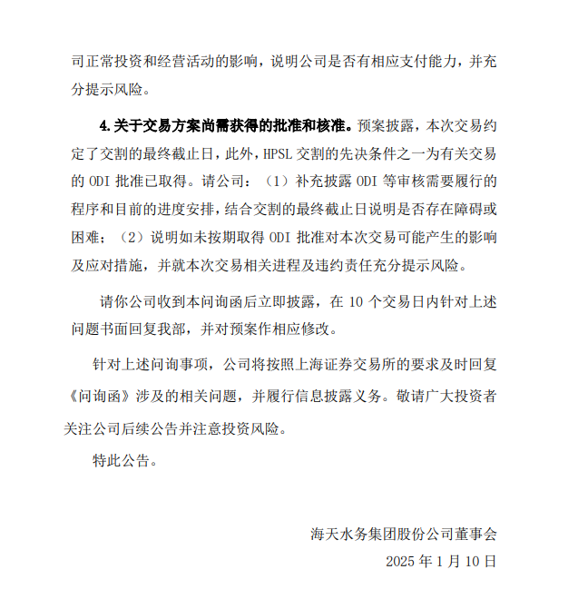 海天股份在公告中表示,将按照上海证券交易所的要求及时回复《问询函》涉及的相关问题,并履行信息披露义务。