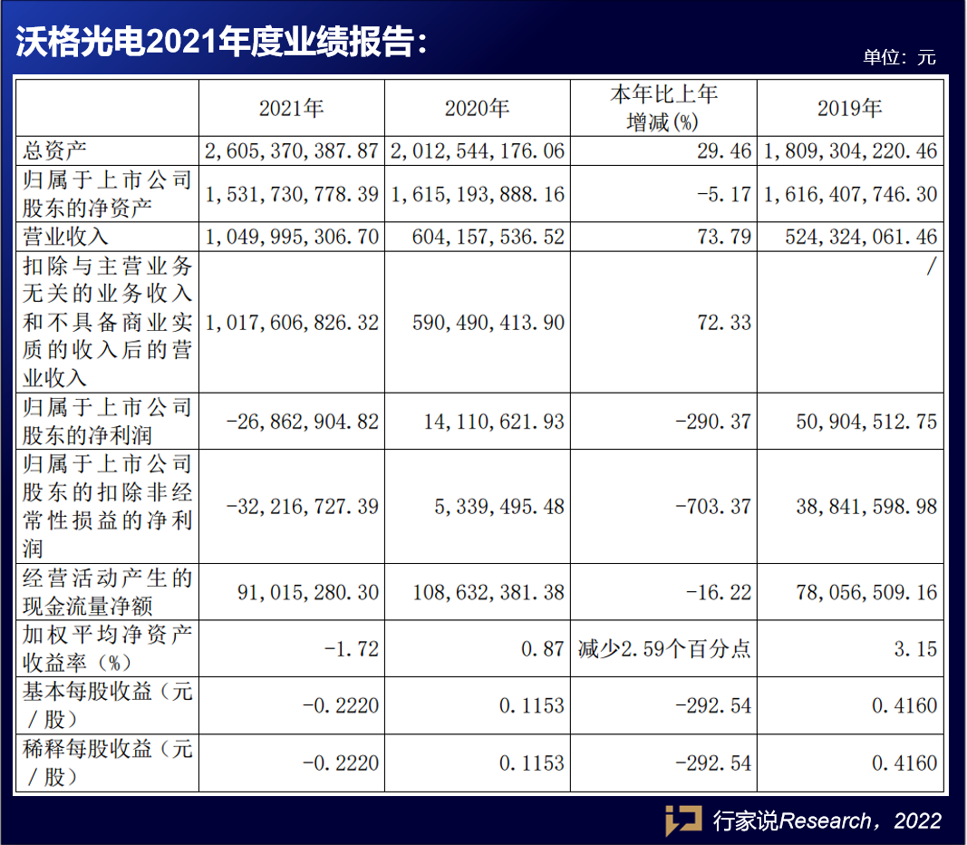报告显示,沃格光电在2021年实现营业收入10.50亿元,同比增长73.79%;其中,光电玻璃精加工业务实现销售收入6.84亿元,同比增长21.49%;Mini LED新产品研发收入268.24万元。