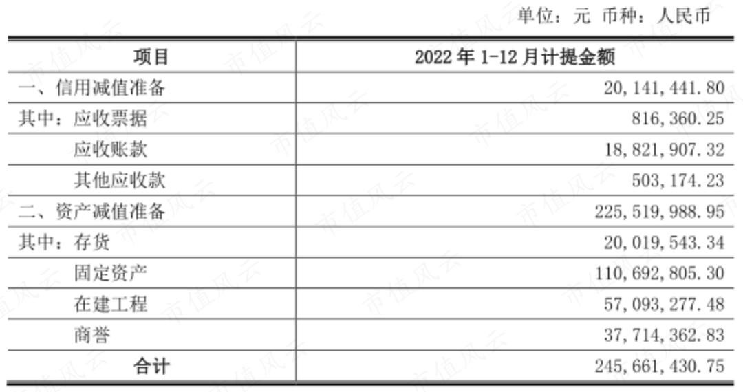 2023年4月,该公司披露对应收账款、存货、固定资产、在建工程、商誉合计计提2.46亿元资产减值,一次洗了个大澡。