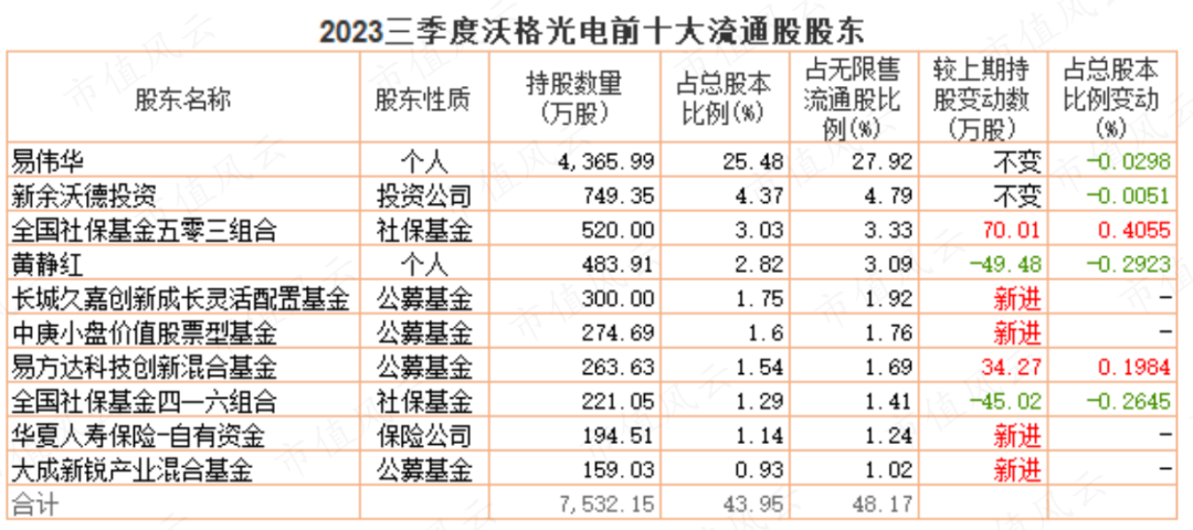从沃格光电前十大流通股股东看,在2023年三季度新进和加仓的有长城长城久嘉创新成长灵活配置基金、中庚小盘价值股票型基金、华夏人寿保险、大成新锐产业混合基金以及社保基金等。