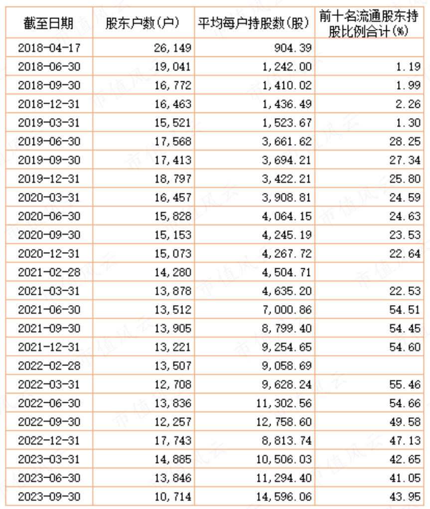 定增价格比沃格光电的最低价还低,不得不说,易老板把实控人的议(薅)价(羊)优(毛)势发挥的淋漓尽致,就这一笔交易就让其在1年左右暴赚2.6亿元;沃格光电上市至今都没赚到这么多,或许未来几年,甚至十几年也赚不到的利润。(二)股东户数大幅减少