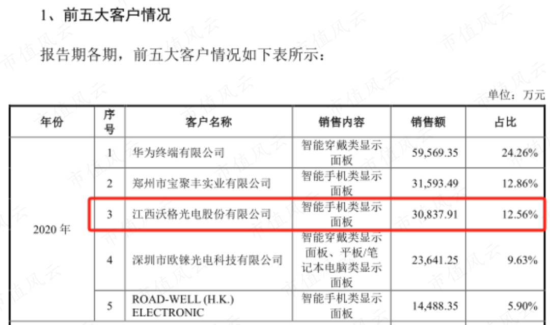 沃格光电是和辉光电在2020年的第三大客户,占后者全年营收的12.6%。