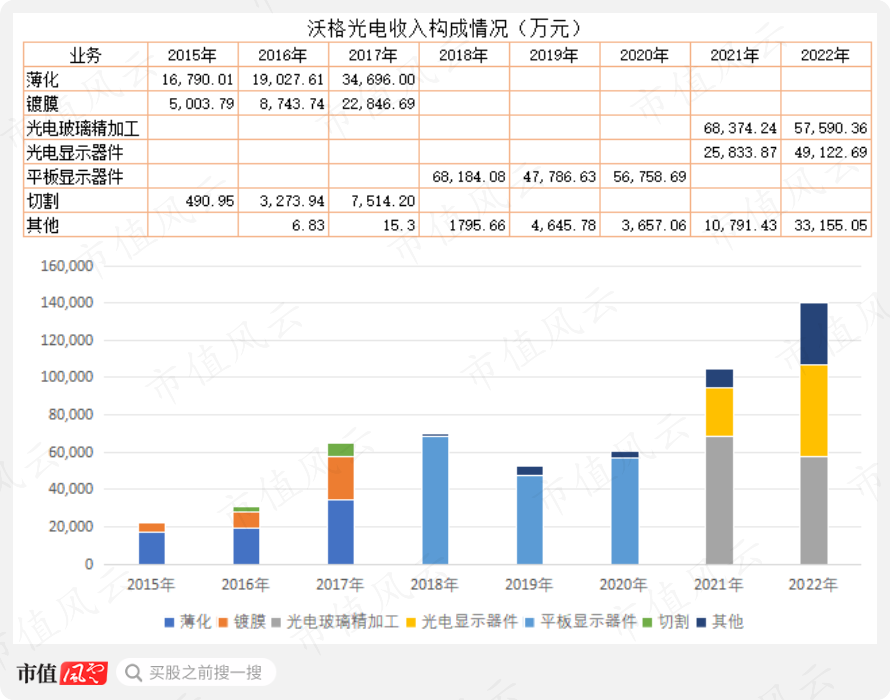 沃格光电的收入构成每隔一段时间就重新调整,似乎是为了让人搞不清楚其主营业务收入变化情况。