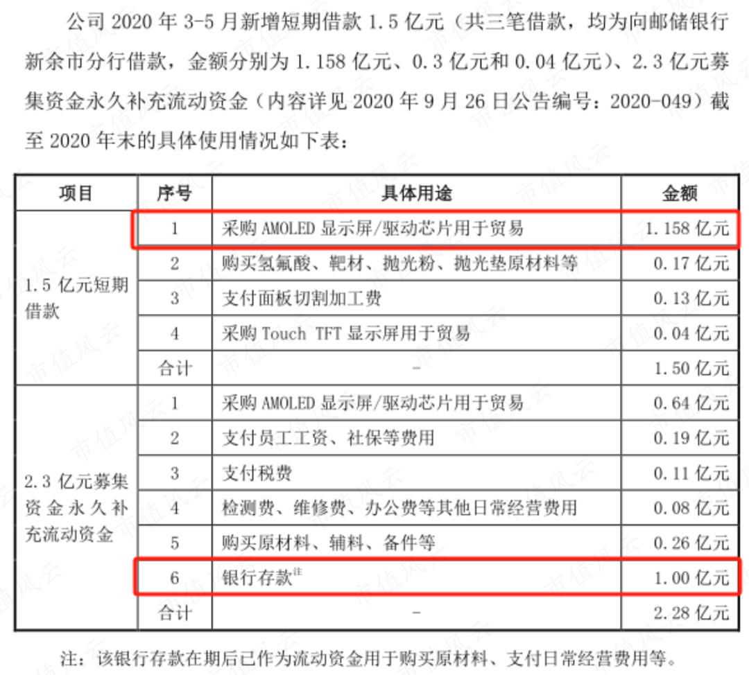 从上方截图可以清晰知道,沃格光电在2020年开展贸易业务的资金来自银行的短期借款,涉及金额约1.2亿元。