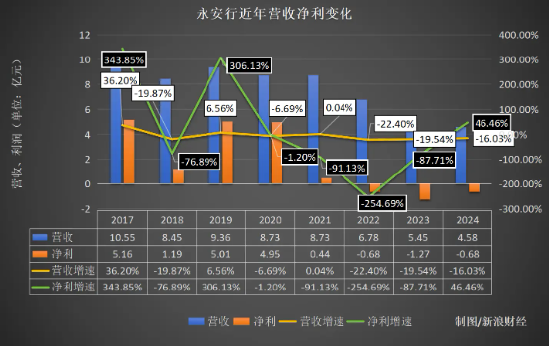 此后永安行的业绩并不稳定。《BUG》栏目梳理永安行历年业绩数据发现,从2020年至今,一直处于下行态势。从净利润来看,2022年、2023年和2024年连续三年陷入亏损;从2020年至2023年,连续四年出现净利润增速同比下滑,2024年有所缓解。