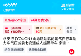 不过《BUG》栏目在永安行京东旗舰店看到,其氢能自行车售价高达6599元,商品页面显示仅售出19辆,可谓是销量惨淡,目前商品也已经下架。永安行的淘宝店铺中,也无法搜到氢能自行车售卖。