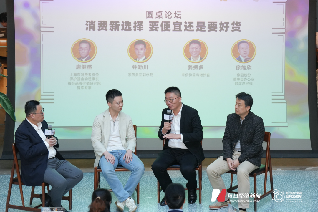 值得一提的是,本次活动中,来伊份首席增长官姜振多受邀参与《在消费新选择要便宜还是要好货》的圆桌对话环节。