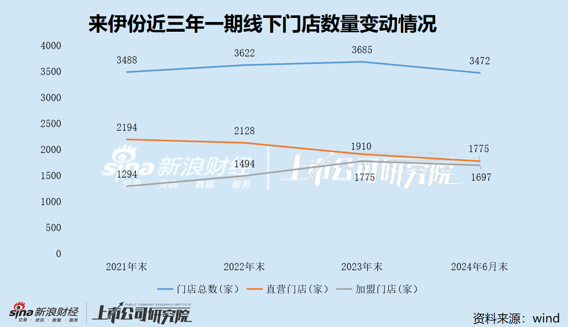 而截至2023年底,来伊份门店总数为3685家,仅较上年增加了63家,不仅距离“万家灯火”遥遥无期,甚至连4000家的目标都未达到。