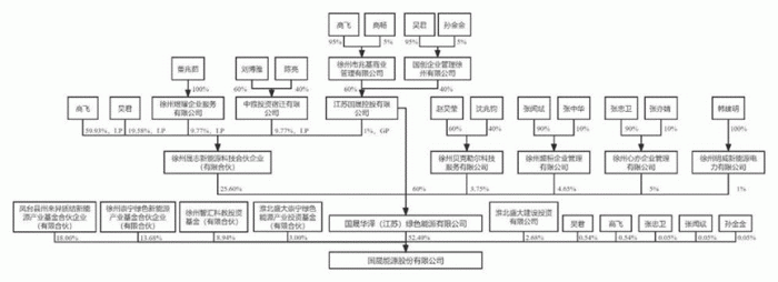 国晟能源的控股股东是吴君、高飞控制的国晟华泽(平台性质,无实际业务)。2022年4月,国晟华泽为履行出资,向淮北盛峰环境借款3800万元,注资国晟能源。