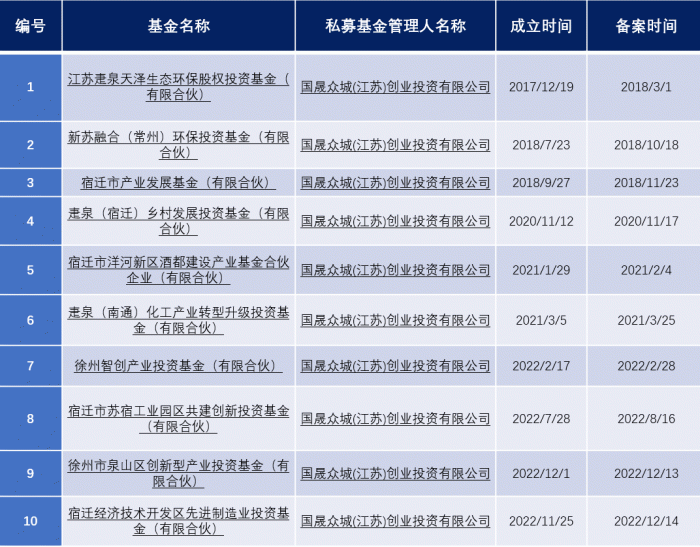 另外,根据中国基金业协会今年3月30日公开的信息,国晟众城(江苏)创业投资有限公司的管理规模在20亿至50亿之间,一共管理10只基金,基本都是政府引导基金性质。