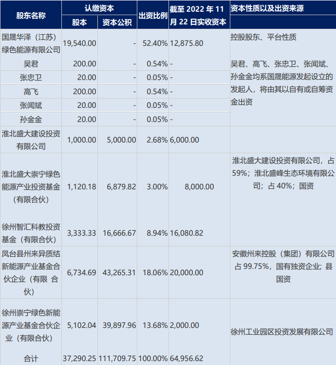 注:若新一轮融资工商变更登记完成,国晟能源各股东的认缴出资额及出资比例;根据公告以及公开资料整理