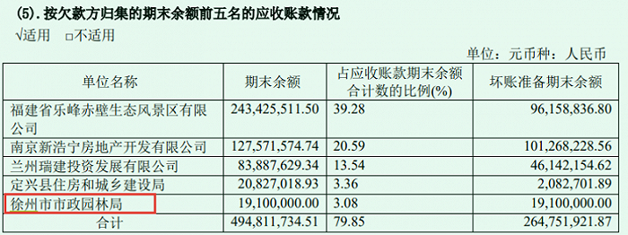 因为直到2022年,在乾景园林的年报中,徐州市市政园林局仍欠公司1910万元应收账款。