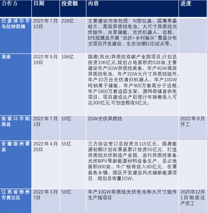 国晟能源光伏项目;根据公开资料整理
