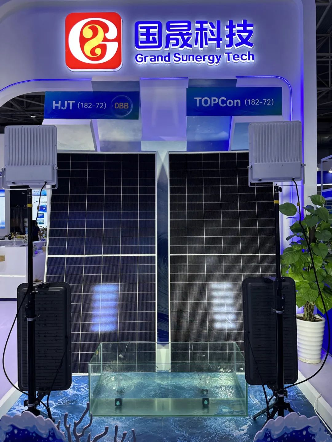 国晟科技此次共展出3款光伏组件产品,场景化展示形式凸显了国晟HJT产品的高耐候性。