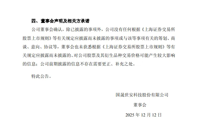 从公告的字里行间,跃然眼前的是 国晟科技 信披尽责的态度,对交易风险的警惕,这一次真的在信披方面颇有担当,不像之前在董事长吴君配合调查事件遮遮掩掩,因信披违规而被上交所通报。